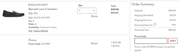Rockport美国站精选鞋履2双$99促销,需使用优惠码 “2FOR99” 。