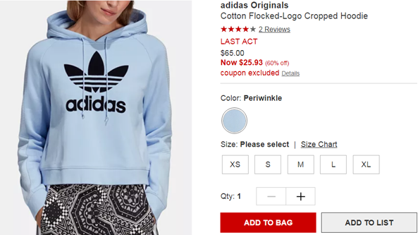 Macys梅西百货这款Adidas三叶草Logo款女子运动卫衣,售价降至4折$25.93,约180元,美国境内满$75免邮,适合凑单转运带回;目前尺码相对齐全;