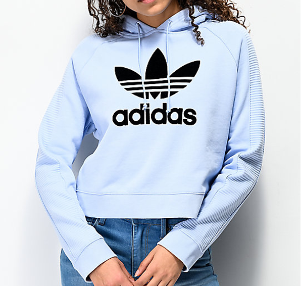 这款adidas 三叶草Logo款女子运动卫衣,淡蓝色的主色,配上黑色的三叶草大Logo,非常好看~