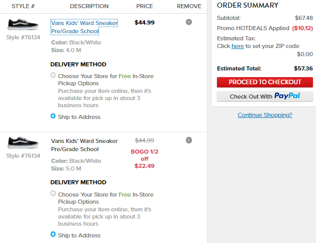 | 内容: | Famous Footwear官网现有全场鞋履买一件第二件半价促销,无需用码,加入购物车显示折后价;另有满$50立减$10码"ENTR2018"或者额外85折码“HOTDEALS”可用。 其中这款Vans范斯 ward lo大童款板鞋黑色黄金码补货,售价$44.99,加入购物车2双,用码“HOTDEALS”每双折后价$28.68,会员美国境内免邮,转运到手约281元,目前大童尺码很全,可以凑单带回。 Vans 鞋近几年真的是火炸了,随意简单的风格带着些许时尚感,搭配无论是牛仔裤,还是运动裤都超级好看。Vans ward lo 麂皮帆布拼接款休闲鞋单鞋,跟old skool就鞋头缝线不一样,但价格便宜很多哦。