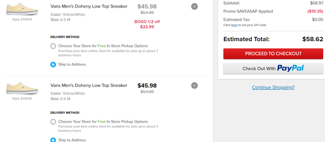 | 内容: | 评论 Famous Footwear官网现有全场鞋履买一件第二件半价促销,无需用码,加入购物车显示折后价; 另外用码:“SAVEASAP”叠加额外8.5折; 其中这款Vans DOHENY 低帮米黄色男款休闲鞋,售价均降至$45.98,加入购物车2双,用码每双折后一双$29.5,会员美国境内免邮,转运到手约310元,目前男士6.5码起有货。 作为帆布鞋界的鼻祖,加上大幂幂、热巴等明星机场街拍出现了N多次,使得VANS一下子又活跃起来了,像Classic Slip-On、Authentic、Sk8-Hi 等都是好热门的呢,这款鞋设计简单时尚,采用结实帆布材质鞋面,舒适透气,橡胶底,防滑耐磨,米黄色视觉感非常清新,适合夏天。
