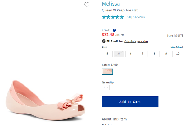 | 内容: | Nordstromrack这款Melissa 成人蝴蝶结果冻鞋断货了,Hautelook这边还有,售价降至3折$22.48,凑单满$100免美国境内运费,预估2磅国际运费,转运到手约250元,目前女士5、6-10码有货,尺码相对齐全。 梅丽莎的果冻鞋哦,一直以来都是以香香的味道著称,除了貌美,穿着舒服之外,TA还能防水,日常穿着超实用的。新系列的鞋子不止好穿,外貌也是超特别,果冻般的色彩和质地增加了俏皮活力感。