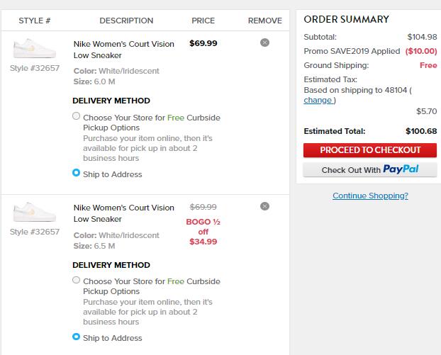 | 内容: | Famous Footwear官网现有全场买一件第二件半价叠加满$50减$10优惠,需用码“SAVE2019” -镭射款限定女款板鞋,售价$69.99 ,买2双参加活动折后价$47.49,会员美国境内免邮,转运到手约457元,目前女士6码起有货; -情人节款,售价$74.99,买2双参加活动折后价$51.24,会员美国境内免邮,转运到手约483元,目前女士大码有货; 这款情人节限定,是流行的叠勾元素,而且鞋上面有Nike标志的爱心。鞋底有串英文“U COMPLETE ME”。