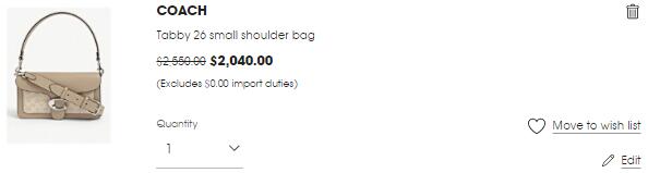 款Coach蔻驰Tabby C 奶茶老花,直邮港澳2550港币,叠加用码折后2040港币,约1745元,直邮好价!