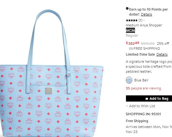 | 内容: | Nordstrom官网的这款MCM中号Anya Shopper托特包 冰激凌蓝,售价降至75折$382.49,美国境内免邮,需要转运带回;注意这款刚开始定价850刀,目前定价降了! MCM的包款可以说时火遍全球了,这款性价比高,容量大,进行短途旅行可以带!中号尺寸:36.8cmW x 30cmH x 15cmD