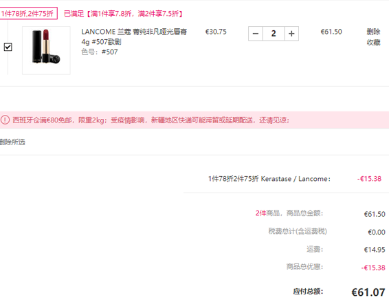 | 内容: | 目前Perfume's Club中文网西班牙仓的这款18年秋冬兰蔻 L'Absolu 雾面唇膏507有货,售价?0.75,目前加入购物车享1件78折/2件75折促销;此款凑单折后价?3.06,凑单直邮到手约180元,近期网站直邮低价,每个账户限购5件; 菁纯丝绒雾面哑光唇膏口红磨砂壳包装超级有质感,507是红棕色,颜色超适合秋冬,超高级超显白。不挑肤色黄皮也无压力,整体色调偏暖,饱和度很高,虽然是哑光质地但是不会拔干,涂起来膏体顺滑好推开。