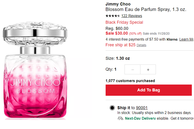 | 内容: | Macy's梅西百货的Jimmy Choo 吉米周 BLOSSOM 缤纷女士浓香水40ml,售价降至5折$30; 满$25美国境内免邮,折扣至北京时间11月29日下午15点。 香调:花香果香调 前调:柑橘 红浆果 树莓 中调:香豌豆 玫瑰 后调:檀香木 麝香 属性:女香 标签:甜 果香 清新 白色花 柑橘 酸