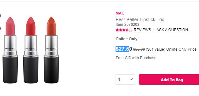 | 标题: | MAC魅可正装尤雾弹唇膏3件套5折$27.5 |