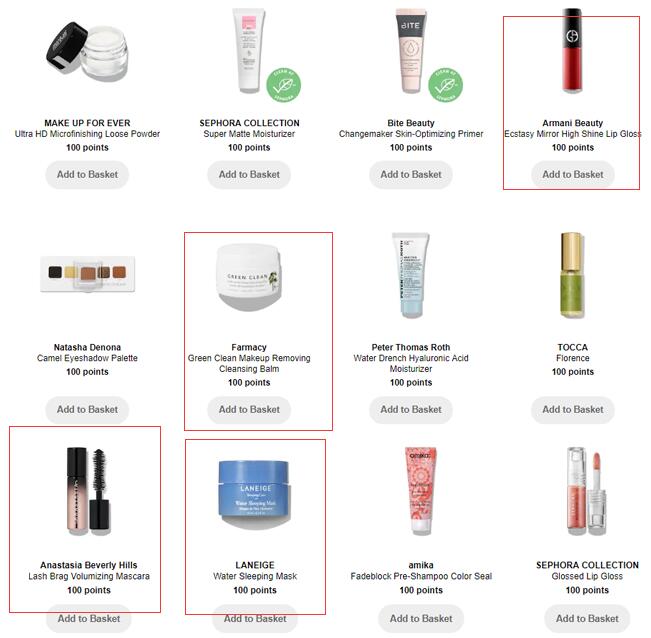 目前丝芙兰美国积分兑换专区继续更新,新增100积分兑换MUF散粉、250积分兑换KVD淡香;