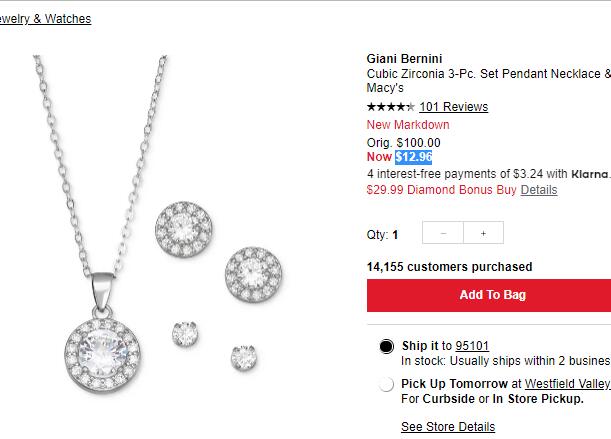 | 标题: | Giani Bernini 锆石项链耳钉3件套折后$12.96 |