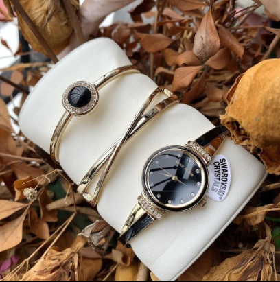 Anne Klein 安妮?克莱恩 AK/3292BKST 施华洛世奇水晶 女士手镯手表套装,除了貌美腕表还配有手镯,26mm表盘点缀施华洛世奇水晶时标,闪耀有个性,既优雅又酷感十足,此外,还带有套装包括2个手镯:一个镶嵌施华洛世奇水晶的黑色珐琅手镯及一个交叉金色手镯,手镯可以搭配佩戴也可以分别单独佩戴,美观大方。