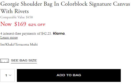 Coach工厂店上架了这款平价tabby!Coach蔻驰 Georgie 酒神老花拼色腋下包补货了,售价降至$169,美国境内免运费;
