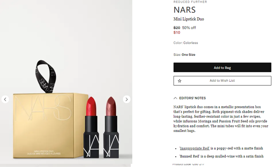 net-a-porter美国官网的这款NARS 哑光唇膏2件套组补货了,售价$10;