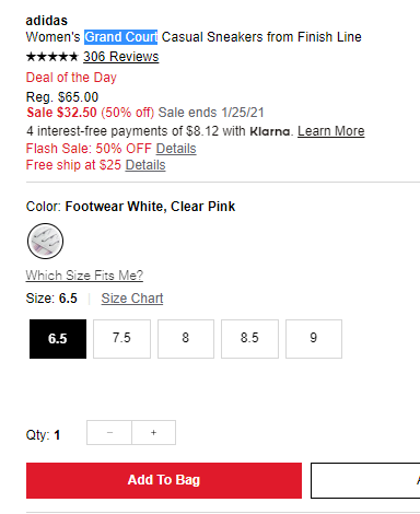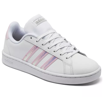 梅西这款Adidas Grand Court 三条杠荧光粉小白鞋,售价降至5折$32.5,目前女士US6.5码起有货。
