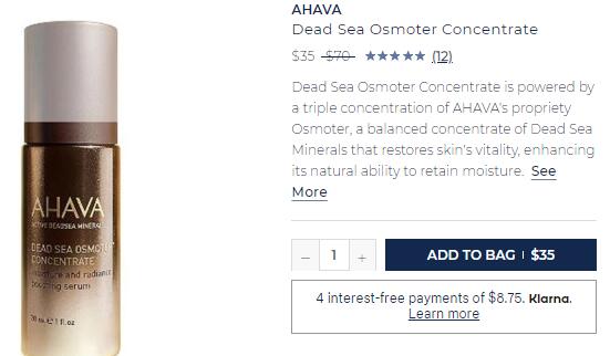 | 内容: | Bluemercury美国官网的这款AHAVA以色列死海圣爱精华30ml,售价降至5折$35; 含有AHAVA独有的Osmoter?死海矿物精华配方,采用死海中的天然矿物成分,能活化细胞将其调节至最佳的状态,大大提升肌肤的吸收水分的能力。天然的死海泥让肌肤均匀亮泽。丰富的乳木果及芦荟萃取成分,能镇定皮肤同时全面改善皮肤至健康状态。为皮肤带来充足的水分,促进肌肤更新并维持水油平衡,使皮肤恢复水嫩和弹性。