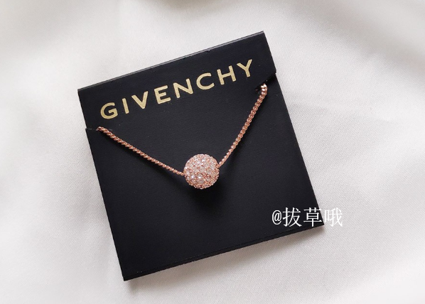 这款纪梵希许愿球玫瑰金锁骨链,带有施华洛世奇元素,链子带有3个搭扣,可调节选择佩戴长度。