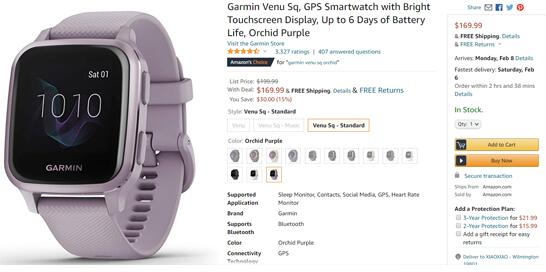 | 标题: | Garmin 佳明Venu Sq智能手表折后$169.99 |