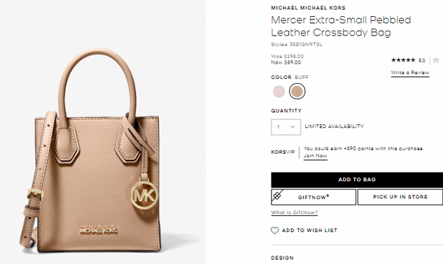 | 内容: | 网站需在境外网络环境下打开! Michael Kors美国官网的这款Michael Kors Mercer 迷你托特包 粉色和奶茶色补货,售价降至$89,美国境内免邮,预计发货重量3磅,转运到手约726元。 这款Mercer手袋造型简约,选用了精巧的锁扣,使包袋既低调又有质感。外层选用了荔枝纹牛皮,内部是PVC压印十字纹,使包袋拥有柔和而挺阔的外型,整体轻巧便于携带。活泼之余又不失稳重。内置的拉链口袋可以轻松容纳个人物品。
