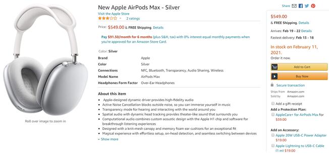 | 标题: | 补货!Apple AirPods Max 新款头戴式耳机售价$549 |