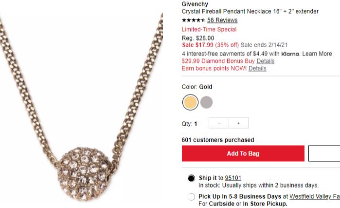 Macy梅西百货的这款Givenchy纪梵希火球玫瑰金锁骨链,售价降至65折$65.99;