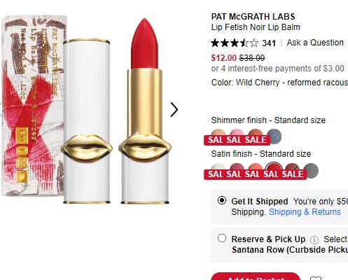目前丝芙兰美国这款Pat Mcgrath Labs白管唇膏多色补货!售价降至3折$12;
