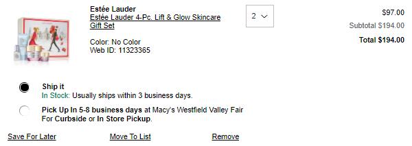 | 内容: | 梅西百货这款Estée Lauder雅诗兰黛 多肽面颈霜护肤套装补货了,价值$162,售价$97; 另外Estée Lauder订单满$75送小棕瓶3件套; Estée Lauder订单满$100加送线雕精华2件套; 套装包括:弹力多肽面颈霜50ML、弹力多肽眼霜5ML、线雕精华15ML、深层净肌洁面泡沫/面膜30ML;