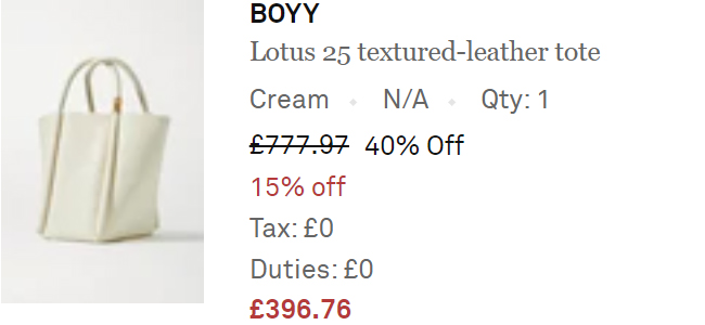 | 标题: | BOYY Lotus 25 白色tote包折后价?396.76 |