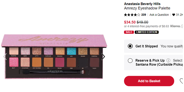 | 内容: | 网站需在境外网络环境下打开! Sephora美国官网的这款Anastasia Beverly Hills Amrezy 18色眼影盘,售价降至7折$34.5;