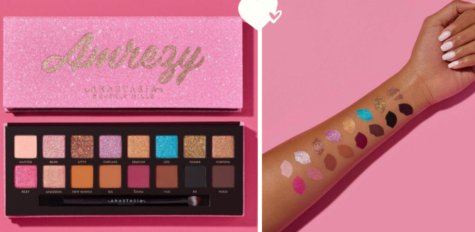 继上次的合作款高光大卖之后,Anastasia Beverly Hills 再次与 Amrezy 合作推出了这款16色眼影盘,配色比较丰富,可以说是非常吸睛了!其中包含了雾面和闪亮珠光,粉色bling bling外壳搭配金色字体,满满少女心!