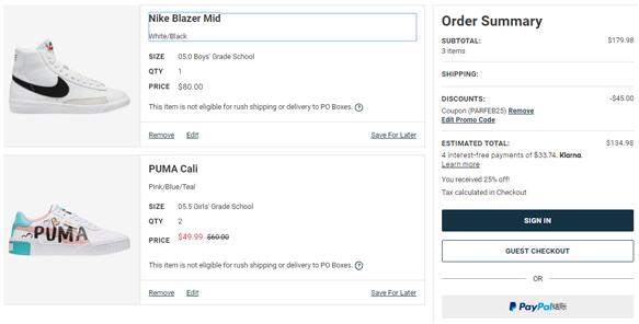 | 内容: | 目前Eastbay网站常规折扣码更新如下,具体优惠如下: -无门槛8折,需要使用优惠码PARFEB20。 -满$175立享7.5折,需要使用优惠码PARFEB25。 这款Puma 彪马涂鸦大童款板鞋补码了,售价降至83折$49.99,用码折后$37.49,美国运费免邮,转运到手约392元。目前big 5.5码有货。 Puma 彪马Cali板鞋,鞋型舒适柔软,谱出浪漫可爱的调调,复古感的厚鞋底设计,带着微微增高的小心机,让人爱不释手.