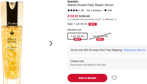 | 内容: | 网站需在境外网络环境下打开! Sephora美国官网这款Guerlain 娇兰 帝皇蜂姿赋妍紧致修复精华液 30ml补货了,售价67折$108.5;