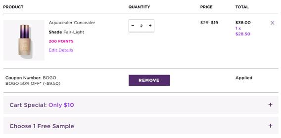 | 内容: | Tarte美国官网现有全场商品第二件半价促销,需用码“BOGO”,加车2件用码显示折后价; 参加活动商品页面标有“Buy 1, Get 1 50% OFF* ” 另外,结账时可自选1件小样; 订单满$50美国境内免运费;活动随时结束; Tarte 彩妆主打纯自然养肤彩妆,招牌的成分是亚马逊黏土,不伤皮肤,持久显色。它家的明星产品是亚马逊黏土腮红和亚马逊黏土粉底。 这个网站海淘不算友好,建议多多尝试下单。