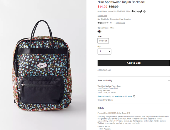 | 标题: | Nike Tanjun方块碎花双肩包27折$14.99(约99元) |