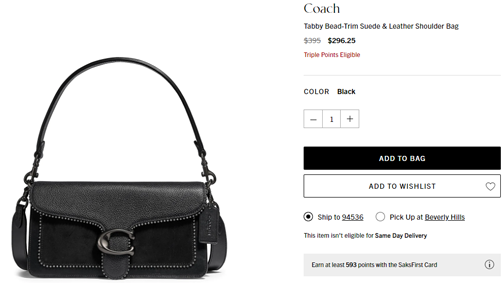 | 内容: | Saks Fifth Avenue这款Coach蔻驰Tabby 26 新款包包 黑色,售价降至75折$296.25,美国境内免邮,需要可关注; 美国手袋大厂Coach也跟上了这股“C”风潮,这款c bag也很百搭,包身也有马鞍包的身影,可以说是最近的潮流元素都有覆盖!新款黑色纯色。