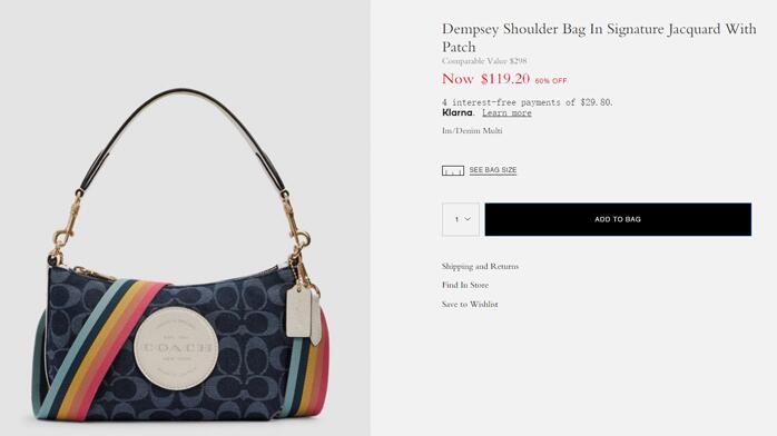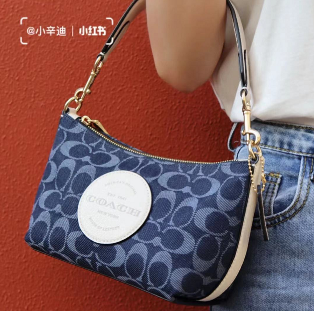 Coach工厂店商家这款Coach蔻驰Dempsey系列丹宁色腋下包半月包补货,售价4折$119.2,订单满$99美国境内免运费。
