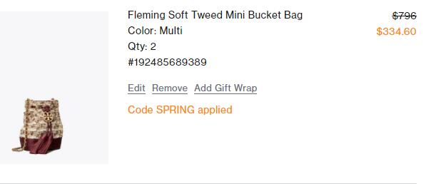 | 内容: | Tory Burch 官网现已开启春季7折促销活动,满$200额外75折,满$500额外7折,需用码“SPRING”; 这款Tory Burch FLEMING SOFT粗花呢福袋水桶包,售价直接降至$239,凑单折后$167.3,美国境内免邮,转运到手约1247元; 实物图来自小红书网友分享: