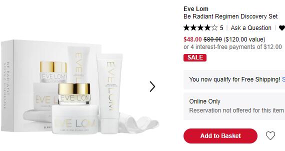 | 内容: | 网站需在境外网络环境下打开! sephora这款EVE LOM Be Radiant 护肤亮白套装,售价降至6折$48;