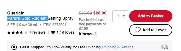 | 内容: | 网站需在境外网络环境下打开! sephora这款Guerlain娇兰Parure Gold Setting Mist 定妆喷雾,售价降至6折$28;