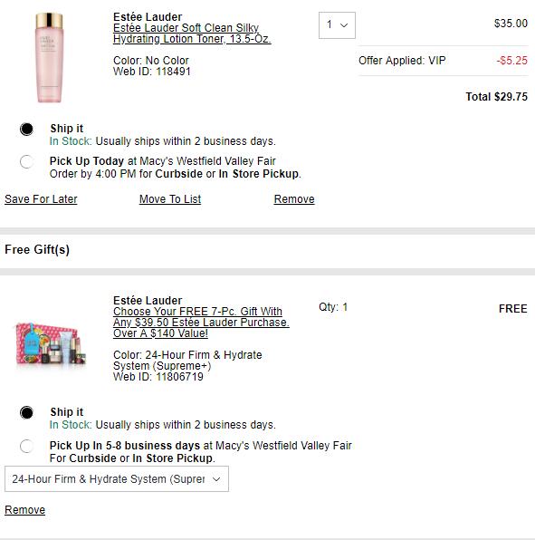 | 内容: | 网站需要科学上网! Macys梅西百货这款Estée Lauder雅诗兰黛粉水400ml,售价$35,可叠加额外85折,需用码“VIP”,折后$29.75; 满$39.5送7件套(智妍和多肽二选一),礼包包含洗面奶、日霜、晚霜、精华、睫毛包、口红还有化妆包; 订单满$80送自选正装智妍眼霜; -订单满$130再送正装,同上; 雅诗兰黛粉水全称是雅诗兰黛净莹细致化妆水,是一款专为干性肌肤设计的化妆水。粉水采用的粉色透明磨砂瓶设计,配合上金色的大圆盖,非常简约大方,产品具有舒缓性的植萃精华,同时融合了一些保湿成分。能在帮助肌肤补充水分的同时,有效的调节干性肌肤的状态,维护肌肤本身的保湿屏障,延长肌肤的水润状态,缓解中干性肌肤的肌肤难题。