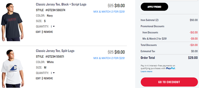 | 内容: | Champion美国官网现有夏日潮流T恤2件任意搭配$29热卖,无需用码,加车2件自动折 ; 部分商品不参加活动,参加活动商品标注:MIX & MATCH 2 FOR $29!; 注册账号美国境内免邮,活动截至时间未知; 据网友反馈网站不是特别友好,不好下单,建议使用paypal付款或者找代刷。