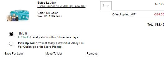 | 内容: | 网站需在境外网络环境下打开! Macy's梅西百货的这款Estee Lauder 雅诗兰黛 新款智妍套装补货了,售价$97(价值$188),用码VIP可享额外85折,折后$82.45;美国境内满$25免邮; -另外雅诗兰黛订单满$75送小棕瓶眼霜3件套; -购买任意美妆护肤满$150自选一件小样(包含雅诗兰黛眼霜、科颜氏洁面等) -购任意雅诗兰黛产品可$50换购价值$245母亲节礼包(含2件正装,礼包不叠加85折),点击加车自选即可; 此套装内含智妍面霜50ml+小棕瓶旅行装15ml+智妍眼霜小样+智妍晚霜小样,雅诗兰黛是美国一线护肤彩妆品牌,以抗衰修护护肤品享誉世界。雅诗兰黛的产品风格是精于研发和精致优雅,它的主题产品有护肤品 、彩妆和香氛产品。明星智妍系列也是高居护肤品榜首位置。