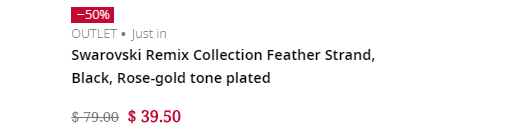 | 内容: | 网站需在境外网络环境下打开! Swarovski美国官网这款Swarovski施华洛世奇 19秋冬新款羽毛磁扣手链,目前售价降至5折$39.5,订单满$75美国境内免邮。 就以Swarovski Remix Collection搭配出属于您的首饰系列。通过创新设计的隐藏式磁扣,您可组合其他Remix首饰,不断打造充满个人特色的造型。精致考究的镀玫瑰金色饰链上带有今季流行的羽毛装饰,并镶有Swarovski仿水晶,既可作手链佩戴,又可加上其他饰链,变成另一款别具特色的首饰,亦是送礼的不二之选
