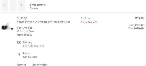 | 内容: | 网站需在境外网络环境下打开! Nordstrom这款SHISEIDO Future Solution LX Timeless时光琉璃套组补货,售价降至7折$199.5; 另外还叠加满赠多重好礼: -SHISEIDO订单满$75送品牌5件套,满额自动加车; -任意美妆香氛订单满$125送小样礼包,满额自动加车; 结账自选3小样,美境免邮; 这款套装包含 ?空琉璃LX御藏眼唇再生霜0.08oz、Future Solution LX Total防护日霜SPF 20(0.2oz)、Future Solution LX终极亮采精华液(0.3oz)、Future Solution LX 御藏晚霜(1.7oz)