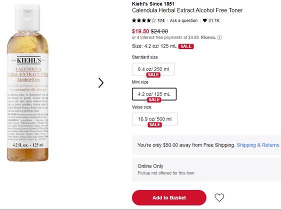 | 内容: | 网站需在境外网络环境下打开! 目前Sephora美国官网的这款Kiehl's 科颜氏 金盏花水 125ml,售价降至81折$19.5;另外Rouge会员已开启8折,需用码“OMGSPRING”,折后$15.6; 具体如下: 1、Rouge会员享额外8折优惠,4/9-4/19; 2、VIBR会员享额外85折优惠,4/13-4/19; 3、Insider会员享额外9折优惠,4/15-4/19;
