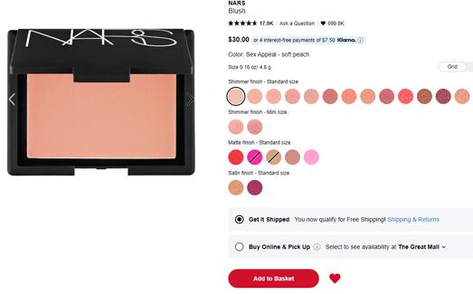 | 内容: | 网站需在境外网络环境下打开! 目前sephora美国官网的这款NARS炫色腮红 4.8g Sex Appeal补货,售价$30;另外Rouge会员已开启8折,需用码“OMGSPRING”,折后$24; 具体如下: 1、Rouge会员享额外8折优惠,4/9-4/19; 2、VIBR会员享额外85折优惠,4/13-4/19; 3、Insider会员享额外9折优惠,4/15-4/19;