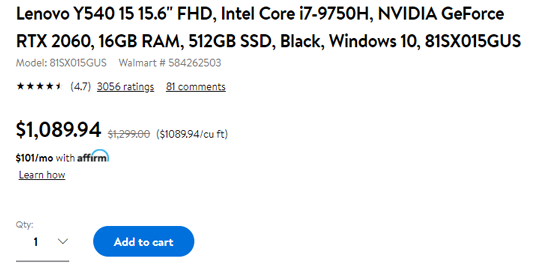 | 内容: | Walmart现有Lenovo Legion Y540 游戏本 (i7-9750H, 2060, 16GB, 512GB) ,特价$1089.94(原价$1299.00),美国境内免邮; Intel Core i7-9750H 6C12T 处理器,睿频 4.5GHz;16GB DDR4 2666MHz 内存,512GB PCIe M.2 固态硬盘;NVIDIA GeForce RTX 2060 6GB 独显,15.6" 144Hz FHD 300nits IPS 屏;Bluetooth 4.1 + 802.11ac;3 x USB 3.1 Gen1、1 x USB-C 3.1 Gen2、1 x HDMI 2.0、1 x MiniDP 1.4;Win10 Home。 Y540 游戏本搭载了 i7-9750H + 2060 显卡,轻松搞定高画质单机大作。144Hz 刷新率 IPS 屏也有着更好的视觉体验,还支持杜比全景声音效。Y540 作为 Y740 的同门师弟,模具的散热设计十分相似,保证了在长时间高负载运行时不会过热降频,同时外观也不像很多游戏本一样设计的过于夸张,在任何场景下使用都不尴尬。低调中透着一丝骚气的外观、强大的性能、高效的散热,性价比超高,颜值与性能兼具。