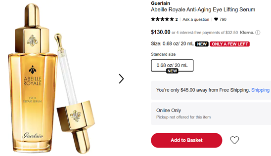 | 内容: | 网站需在境外网络环境下打开! Sephora美国网站上新了这款Guerlain娇兰 帝皇蜂眼精华 20ml,售价$130;另外Rouge会员已开启8折,需用码“OMGSPRING”,折后$104; 具体如下: 1、Rouge会员享额外8折优惠,4/9-4/19; 2、VIB会员享额外85折优惠,4/13-4/19; 3、Insider会员享额外9折优惠,4/15-4/19;