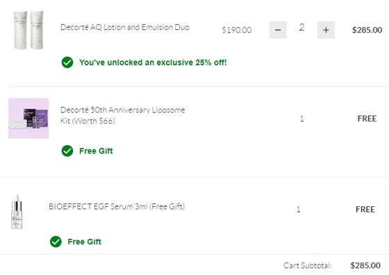| 标题: | Decorte 黛珂 AQ 舒活水乳护肤套装75折$142.5,满赠周年纪念套装 |