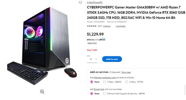 | 内容: | Walmart现有CyberPowerPC 台式机 (R7 3700X, 3060, 16GB, 240GB+1TB),售价降至$1229.99; 美国境内免邮; AMD Ryzen 7 3700X 8核16线程,不锁倍频,B450主板,16GB DDR4 3200内存, NVIDIA GeForce RTX 3060 12GB GDDR6 显卡, 240GB 固态硬盘+1TB 机械硬盘; 6 x USB3.0, 2 x USB2.0; WiFi5+蓝牙5,Windows 10 64位, USB键鼠,600W电源。