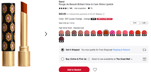 | 内容: | 网站需在境外网络环境下打开! 目前sephora美国上架了这款Gucci Rouge de Beauté Brillant Glow & Care 4月新品口红,售价$42; VIBR会员用码“OMGSPRING”享8折,折后$33.6; 具体用户优惠力度和活动时间如下: 1、Rouge会员享额外8折优惠,4/9-4/19; 2、VIBR会员享额外85折优惠,4/13-4/19; 3、Insider会员享额外9折优惠,4/15-4/19;